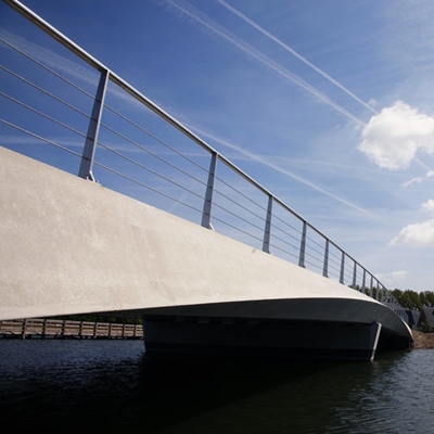 De 44 meter lange verkeersbrug voor Heerhugowaard bestaat uit betonnen standaardliggers, gecombineerd met maatwerk randliggers van zelfverdichtend beton. Om kosten te besparen is de overspanning bovendien afgestemd op de standaardmaten van betonnen liggers.