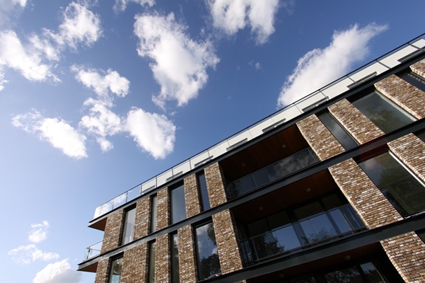 De twee appartementenvilla’s staan midden in een brede groenstrook aan de rand van het centrum van Barneveld. De gebouwen zijn ontworpen als alzijdige paviljoens in het groen. Door de terugliggende toplaag, de horizontale banden en de open hoeken krijgen de volumes een mooie gelaagdheid.