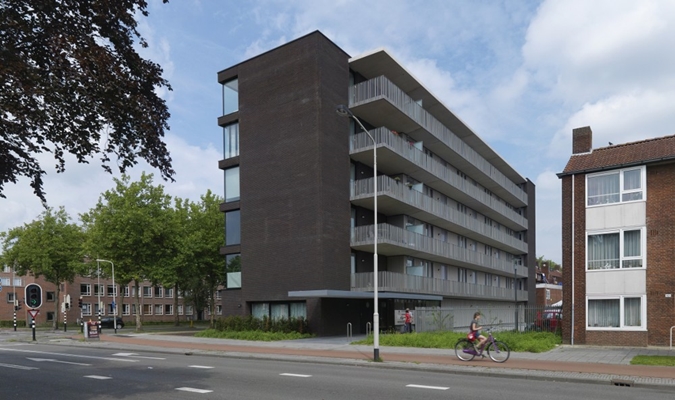 Het appartementengebouw, waarin de 26 startersappartementen zijn gevestigd, neemt een bijzondere positie in op de hoek van de Sint Ignatiusstraat en de Beverweg.