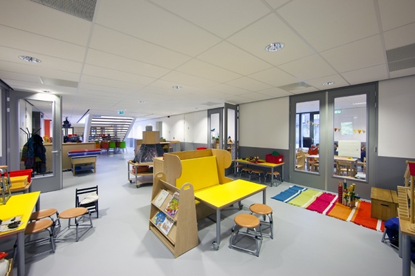 Grosfeld van der Velde architecten heeft onlangs Kindercampus ‘de Vuurvogel’ opgeleverd. Het complex bestaat uit een basisschool met gymzaal, een buitenschoolse opvang en kinderdagverblijf; twee verschillende gebruikers onder een dak.
