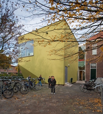 Dit oude, wat gesloten gebouw is opengebroken, zodat de ruimte optimaal gebruikt kan worden en er een transparant interieur ontstaat. De nieuwbouw vult het oude schoolgebouw aan en maakt er een duurzame en toekomstgerichte school van. Op de begane grond van de nieuwbouw bevindt zich de multi-functionele pauze/muziekruimte, op de eerste verdieping de drie gekoppelde specials: de handvaardigheidruimte, het tekenruimte en het lab.