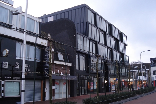 Bovendien geeft het complex met haar massa, vorm, maat, schaal en kleur het plein een meer stedelijke uitstraling, één die het gezien de positie in de stad verdient. Daarnaast biedt het complex tegenwicht aan de kakofonie van de bebouwing in de directe omgeving en fungeert het als positieve
