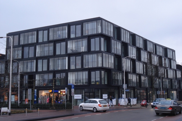 Het sculpturaal karakter van het gebouw wordt ontleend aan de stapeling en verspringing van de wintertuinen en balkons ten opzichte van elkaar als ook ten opzichte van de gevel. Dankzij beperkt kleur- en materiaalgebruik (aluminium kleur zwart) blijft de gevel ingetogen.