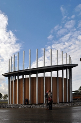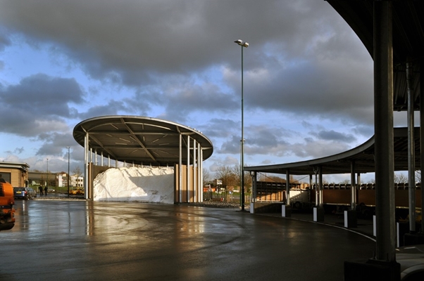 De bouwvolumes zijn zodanig gepositioneerd en vormgegeven dat het de handelingen op het werkterrein vereenvoudigt en het gebruik op een positieve manier stimuleert. Ronde vormen bieden een overzichtelijke en veilige werkomgeving. De gebouwen openen zich naar het centrale punt op het middenterrein, zodat een korte en snelle verbinding tussen de verschillende onderdelen van het steunpunt ontstaat. Voor een soepele verkeersafwikkeling zijn in- en afrit van elkaar gescheiden. Een lus rond de zoutloods verbindt deze twee aantakkingen op de openbare weg.