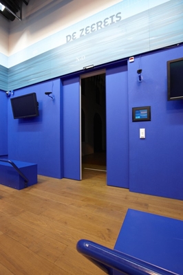 De deuren worden na sluiting van de zaal onderdeel van de projectiewand en dus moest alles vlaksluitend met de wand aansluiten. Hiervoor hebben wij een stalen constructie bedacht welke een extra dimensie aan het begrip schuifdeur toevoegt. Daarom hadden we behoefte aan een echte krachtpatser om die deuren te kunnen openen en sluiten. Het juiste antwoord was de Powerdrive van GEZE. Kracht, geavanceerde techniek en perfect materiaal komen hierin allemaal samen.” Inmiddels straalt het museum als nooit tevoren. Welkom in de maritieme geschiedenis van Nederland.