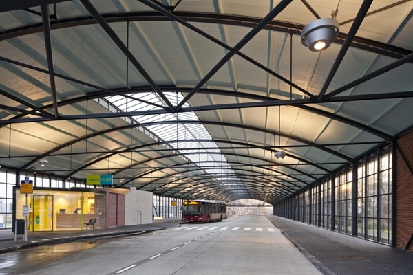 De sfeer van het gebouw is dermate krachtig dat de architectonische ingrepen zich konden beperken tot terugbrengen van alle aanwezige daglichttoetredingen en het functioneel huisvesten van de nieuwe functie en het tot z'n recht laten komen van de bestaande kwaliteit. De voormalige spoortracés zijn verwijderd en het niveauverschil is opgevuld met grondpakket, waarbij het niveau van alle perrons in de loods overeenkomt met de onderkant opnieuw met glas in gevulde pui. Door deze ingreep worden alle bewegingen van bussen en passagiers in de loods in de loods zichtbaar gemaakt. Boven de nieuwe entrees in de kopgevels zijn stationsklokken opgehangen om met minimale middelen de nieuwe functie als busstation te duiden.