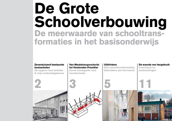 Zeven ontwerpstrategieën zijn geanalyseerd en getoetst aan drie typen schoolgebouwen die op succesvolle wijze geschikt zijn gemaakt voor nieuwe onderwijsmethoden. Gebruikers en betrokkenen zijn gevraagd naar hun dagelijkse ervaringen. Het onderzoek naar de meerwaarde van schooltransformaties in het basisonderwijs is als compacte versie gepubliceerd in Lay-out 20, een uitgave van het Stimuleringsfonds voor Architectuur.