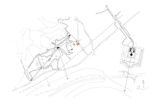 Naast de oude toegangspoort van landgoed Rhederoord ligt een nog onbebouwd kavel. Het kavel kent een hoogteverschil van ongeveer een meter. Het hekwerk van de toegangspoort van het landgoed loopt deels over het kavel. De nieuwe woning die op dit kavel wordt ontworpen, dient het zicht op de tuinmans- en portierswoning en de toegangspoort zo min mogelijk te belemmeren. Het hekwerk behorend bij de poort, wordt verlengd met een haag waarachter de woning zich verstopt. Verder wordt de woning in de grond gedrukt zodat het dak van de woning maximaal 1 meter boven het maaiveld uitkomt. Het dak wordt beplant en volgt de hoogtelijnen van het kavel.