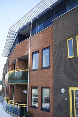 Het gebouw heeft een vriendelijke, eigentijdse uitstraling in metselwerk met metselwerk schijven in een accentkleur en deels inpandige buitenruimten.
