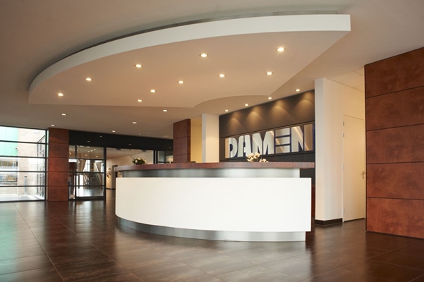 Voor Damen Shipyards te Gorinchem is een nieuwe hoofdentree gerealiseerd met een luxueuze en eigentijdse uitstraling.