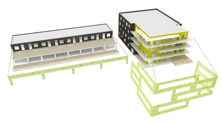 De bijzondere dichtheid van het project, vergeleken met de naburige vrijstaande en semi-vrijstaande woningen, biedt de jonge mensen in de plaats niet alleen betaalbare appartementen van hoge kwaliteit, maar verkleint de footprint van het gebouw ook met meer dan 80%, minimaliseert de ecologische impact en behoudt de waardevolle natuurlijke omgeving. Het project is ontworpen als een zeer compact gebouw met een minimum aan geveloppervlak en een maximum aan thermische isolatie om het thermisch verlies in de winter te minimaliseren, terwijl het is uitgerust met lange balkons aan de zuid- en westgevel die 's zomers werken als een natuurlijke bescherming tegen de zon.