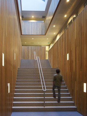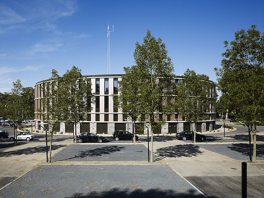 Het stevige basement garandeert voor de vitale functies van het crisiscentrum een beschermde positie, zonder dat het gebouw zich hoeft te verhullen voor haar directe omgeving.