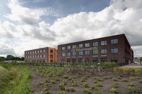VMBO De Meerwaarde te Barneveld. Een ontwerp van AGS architecten en Planners te Heerlen. De Meerwaarde is een scholengemeenschap welke ca. 1800 leerling kan huisvesten.