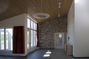 Ondanks het zware zorgprogramma is het gelukt om een zo 'gewoon' mogelijke huis te realiseren met ‘normale’ ruimten, routes, deuren en natuurlijke materialen. Dit passend binnen de context van Nieuw Woelwijck.