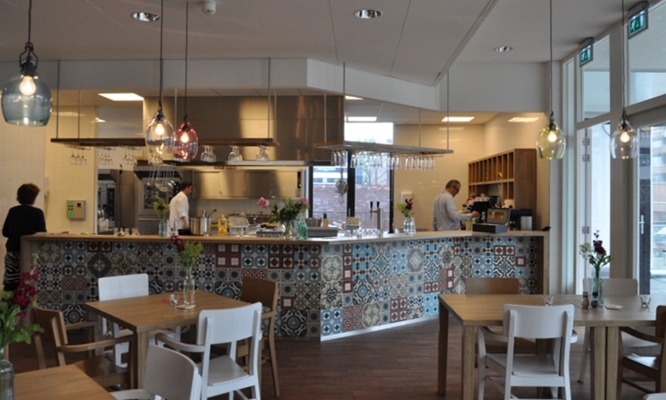 De inrichting is op maat gemaakt, tafels en stoelen zijn geschikt voor mindervaliden en ouderen. De sfeer is een mix van het no-nonsens van de hollandse keuken met cultureel diverse extra’s, zoals de marokkaanse cementtegels op de voorkant van de bar en de glazen hanglampen van het Glasmuseum Leerdam.