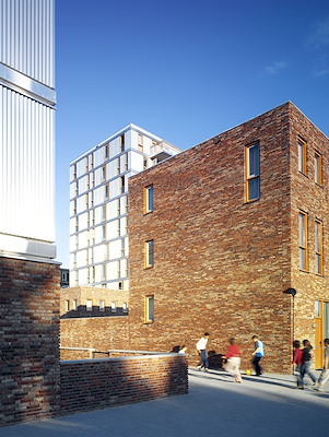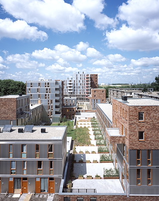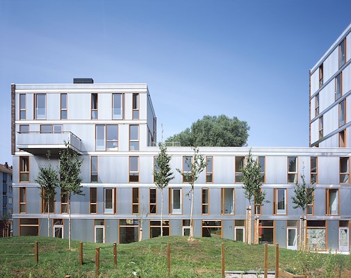 Onder ieder binnenterrein met een, deels collectieve, tuin is een halfverdiepte parkeergarage verborgen. Rondom de tuinen staat een muur die een krachtige grens maakt tussen het openbare en het collectieve gebied. De gevels bestaan uit aluminium en baksteen. Aan de buitenzijde van het plan is de baksteen de baas, aan de binnenzijde het aluminium, soms vloeien ze in elkaar over.