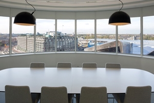 De binnenzijde van de kantoren omvat een uitgebreide renovatie, waaronder de twee entree lobby’s welke zijn voorzien van nieuwe natuurstenen vloeren, bamboe beklede muren, en 3,5 meter transparante tourniquettes. Ontvangst gebieden op de afzonderlijke verdiepingen zijn ook bekleed met bamboe wanden en transparante lift deuren, waardoor daglicht binnentreedt. Tevens zijn alle kantoorvloeren en sanitaire ruimtes volledig gerenoveerd. Nieuwe gladde, sterk geluidwerende plafonds in een stramien van 1.800mm, maakt isolatie boven de plafonds overbodig. Dit geeft de huurder grote flexibiliteit bij de indeling van zijn kantoor. Het energielabel A komt tot uitdrukking in de complete vervanging van de installaties.