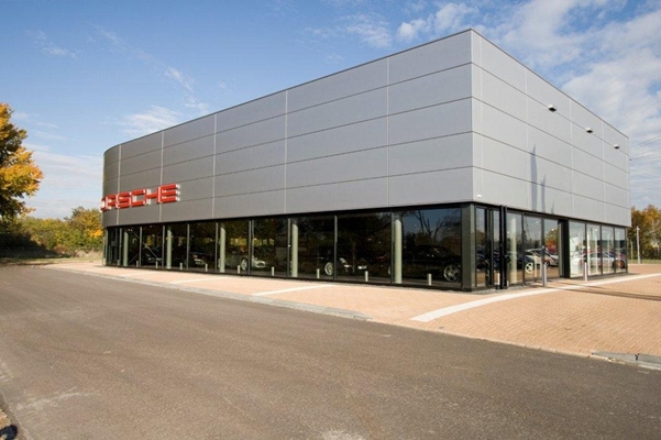Bi-modulaire sandwichpanelen toegepast op PorscheCentrum Groningen, een bewuste keuze.