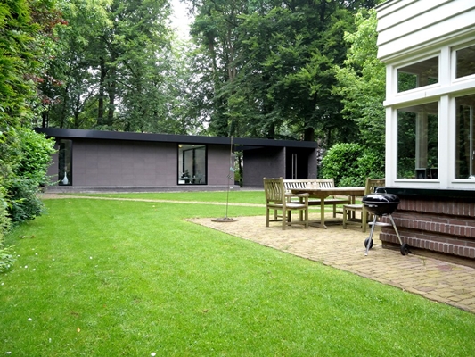 ‘...als ik werk moet mijn patient expliciet privacy hebben, als ik werk zonder klant wil ik contact met mijn gezin...’, zo verwoordde Saskia van der Sluijs haar wens om in de prive tuin een paviljoen te bouwen waar zij haar praktijk als psychologe kan beoefenen.