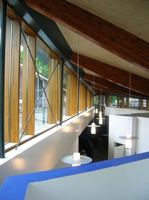 Het zalencentrum met sporthal is uitgebreid met een jeugdsoos, peuterspeelzaal en bibliotheek en wordt tevens gekoppeld aan de naastgelegen basisschool. Tussen de bestaande traditionele bebouwing is een torderende kapvorm ontworpen, welke alle functies aan elkaar koppelt. Het complex krijgt hiermee direct een tweezijdige oriëntatie, waardoor de verschillende functies beter bereikbaar worden.