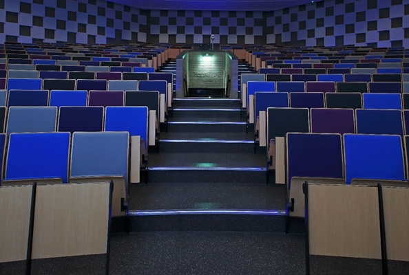 De Erasmus Universiteit beschikt over state-of-the-art collegezalen die volledig verduisterd worden tijdens presentaties en videoconferenties. Door het toepassen van trapneuzen met LED verlichting kunnen studenten en docenten toch veilig de trap op- en aflopen.