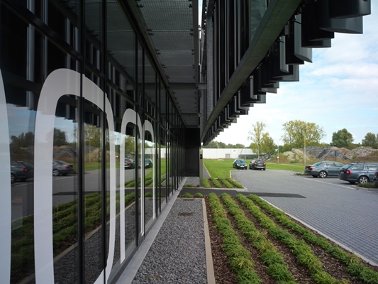 Duco leverde met haar architecturale zonwering een belangrijke bijdrage aan het ontwerp van het bedrijfsgebouw van XL Boom in het Belgische Wijnegem. De DucoSun Ellips werd in verschillende maatvoeringen verticaal voor de gevel geplaatst en wekt zo de indruk van een streepjescode.