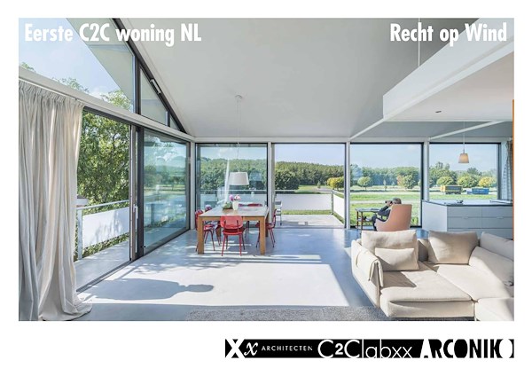 In 2012 is de eerste cradle to cradle woning van Nederland gerealiseerd. De woning, met de naam ‘Recht op Wind’, staat in het Zuid-Hollandse Bergschenhoek. In deze woning, ontworpen door XXarchitecten en Arconiko architecten, is nu voor het eerst elk aspect op de uitgangspunten van cradle to cradle getoetst. Alle gebruikte materialen zijn geanalyseerd, de relatie met de omgeving is optimaal benut en de energiehuishouding is volledig gecontroleerd. De woning wekt zijn eigen energie op. De inzet van de woning was om aan te tonen dat duurzaamheid, comfort en woonplezier perfect samengaan.