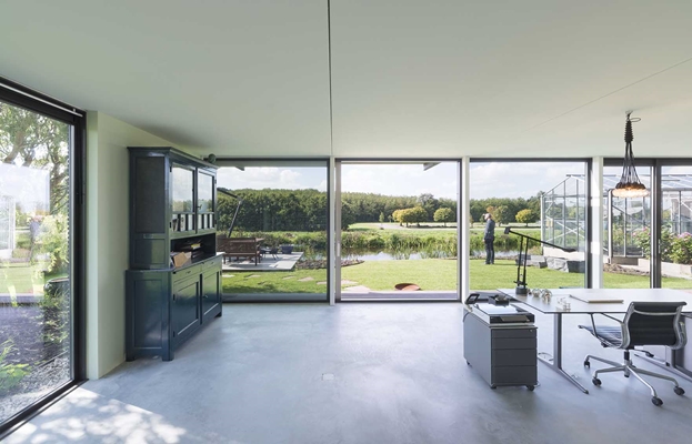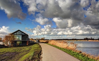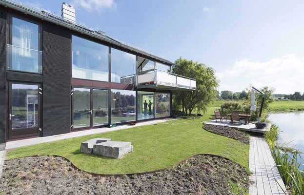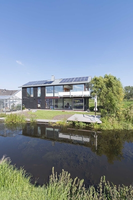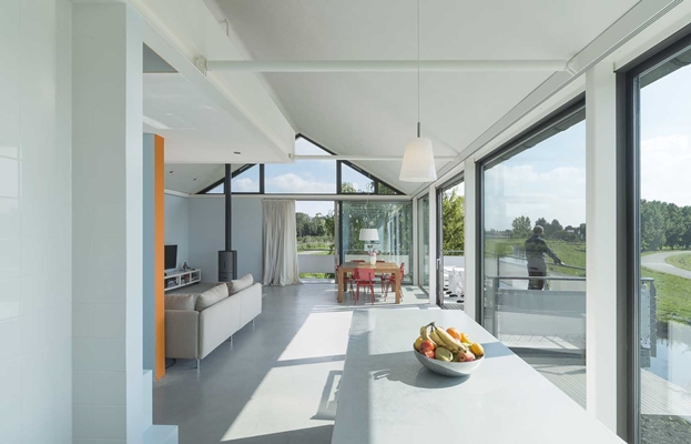 Het huis is zowel van binnen als van buiten onderdeel van het landschap. De materialisatie van hout, steen, glas en zink refereert aan het cultuur-historische verleden van de omgeving. In het ontwerp is de woonlaag opgetild om uitzicht over de dijk te bieden. Iedere woonruimte is georiënteerd op het uitzicht naar een van de vier windstreken. Zo is er overal een prachtig zicht over het landschap en de fraaie Hollandse wolkenluchten.