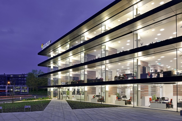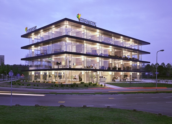 IT-bedrijf Sigmax vroeg ons een kantoor te ontwerpen waarin de verschillende afdelingen van de organisatie samengebracht konden worden, en dat de ruimte biedt om te groeien. In het Business & Science Park in Enschede, direct tegenover het stadion van FC Twente en het NS-station bedachten we een krachtig architectonisch gebouw met een gestroomlijnde vormgeving. De volledig glazen gevel brengt natuurlijk daglicht binnen, en geeft zo letterlijk energie aan de gebruikers.