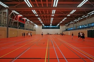 een zgn. combilastische sportvloer gelegd. Deze unieke sportvloer, gecertificeerd in de Klasse 1 van de NOC/NSF, is een topvloer op de Nederlandse markt. De belangrijkste eigenschap van een sportvloer is de schokabsorptie of wel de demping. Dit type sportvloer is een eerste keuze van de docenten lichamelijke opvoeding, vanwege comfort en blessureprefentie. De topsporters, met name handbal, volleybal en basketbal wensen geen andere sportvloer.