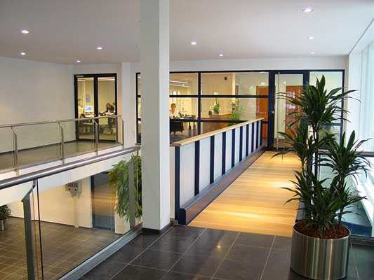 Renovatie van een kantoorpand, waarbij een voorbouw verwijderd is om een representatieve entreetuin te maken. De entree aan de straatzijde en de toegang in het souterrain ter plaatse van het parkeerterrein, zijn gekoppeld middels een vide en een grote trap. De heldere functionele structuur en de nieuwe kleurstelling van de gevel zorgen voor een hedendaagse kantooruitstraling zonder de karakteristieken en kenmerkende structuur van zijn bouwtijd te verliezen.