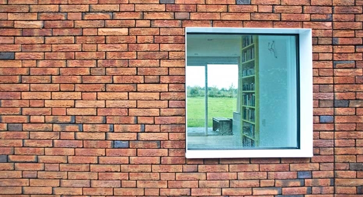 Voor de gevels is gekozen voor de toepassing van metselwerk in wild-verband met een terugliggende voeg van 1 cm en een hoogte van 0,6 mm. Hierdoor ogen de muren als een stenen geheel, die doorbroken worden door willekeurig geplaatste vierkante raam openingen van verschillende grootte. Doordat de kozijnen aan de buitenkant niet zichtbaar zijn en de ramen extra geaccentueerd worden door witte kaders, ontstaat er een interessant spel tussen de traditionele bakstenen muren en modern vormgegeven raamopeningen. Het huis kenmerkt zich door strakke lijnen, dit wordt extra benadrukt door de toepassing van een verholen goot en het samenvallen van de dilatatievoegen met de muurafdekkers van de voor- en achtergevels. Verder is gekozen voor een duurzame materiaalkeuze zonder de toepassing van zink, lood en koper in de gootconstructie. Het regenwater is niet op het riool aangesloten en wordt op eigen terrein afgevoerd naar de sloot aan de achterzijde van het kavel. Verder is gekozen voor een zonne-boiler, douche-wtw en een CO-2 gestuurde balansventilatie in combinatie met lage temperatuurverwarming door middel van vloerverwarming in de woonvertrekken.