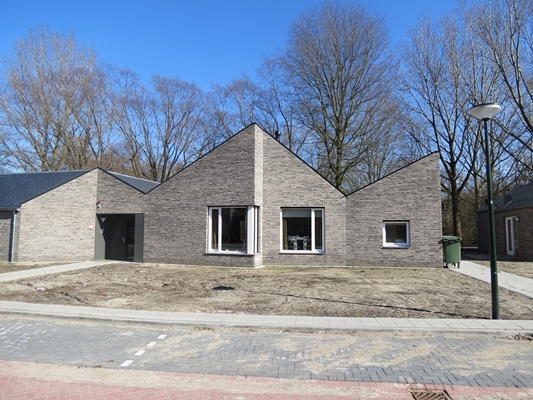 Nieuwbouw 24 woningen aan de Ruybosch te Haaren.In verband met de verouderde staat van de gebouwen op de Ruybosch heeft Cello ons gevraagd een ontwerp te maken voor 24 nieuwe wooneenheden voor bewoners met een verstandelijke beperking. Daarbij hebben zij aangegeven hun bewoners een zo ‘normaal’ mogelijke woonomgeving te willen bieden. Het archetypische huis ligt dan voor de hand, maar daarmee zouden we deze bijzondere plek in de nabijheid van het dorpscentrum tekort doen. Het uitgesproken groene karakter van deze plek, tezamen met de enigszins merkwaardige eisen in het bestemmingplan hebben ons geïnspireerd tot het ontwerpen van een meanderende gebouwmassa, waarin de kleinschalige woonbeleving tot uitdrukking komt. Het speelse beeld wordt versterkt door de ogenschijnlijk willekeurig geplaatste raamopeningen.