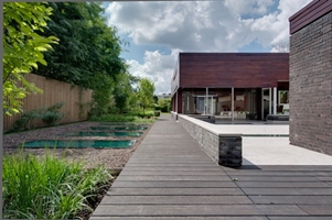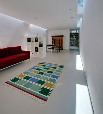 De wens was een extra kamer te creëren voor de collectie boeken en deze ruimte tevens te gebruiken als studeerkamer c.q. logeerkamer. Er is gekozen om de uitbreiding ondergronds op te lossen zodat het volume van het oorspronkelijke ontwerp gelijk kon blijven. Verder zijn er een extra badkamer en hobbyruimte gecreëerd. Door middel van diverse daklichten komt er voldoende daglicht binnen. Het dak van de nieuw in te richten patio is bekleed met dezelfde hardsteen die in het oorspronkelijke ontwerp is gebruikt voor de vloer van de woonkamer en de buitenterrassen. Deze steen is speciaal geïmporteerd uit een Italiaanse steengroeve.