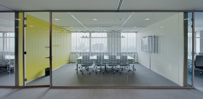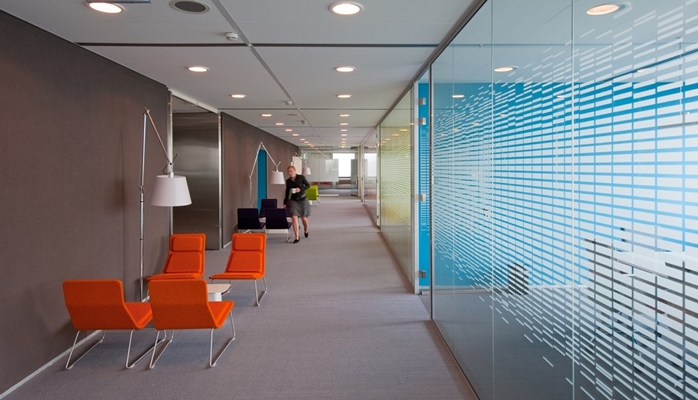 Een laag budget voor de herinrichting van de kantoorvloeren en gedeeltelijk hergebruik van het bestaande wandsysteem hebben geleid tot inventieve en effectieve oplossingen. De lange dichte wanden dienden te verdwijnen en er zijn open werkvloeren voor in de plaats gekomen. Gekleurde wandelementen vormen ook hier een vertaling van de nieuwe huisstijl in het interieur. De omkleuring van wit naar donkerbruin van de vaste kern van het gebouw, met de pantry’s en liften, staat symbool voor de vernieuwing van het Robecohuis, en versterkt tevens het contrast tussen het permanente en het vrij indeelbare.