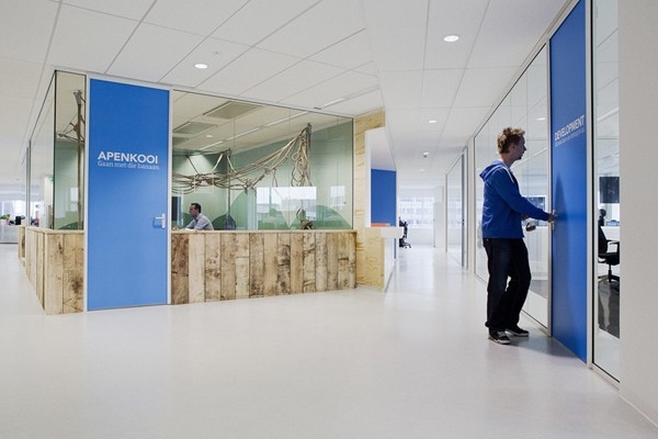 Het generieke kantoorconcept met open, uniforme werkplekken is bewust terughoudend uitgevoerd qua uitstraling en materialisatie, waardoor de themakamers en huisstijlkeuren sterker uitkomen. Deze themakamers zoals overleg- en stiltekamers, zijn door Coolblue zelf ontwikkeld. Het restaurant is de centrale ontmoetingsruimte, waar niet alleen gegeten kan worden, maar er kunnen ook overleggen en presentaties plaatsvinden. Een multifunctionele ruimte dus, die daarom logischerwijs centraal in het pand is gelegen.