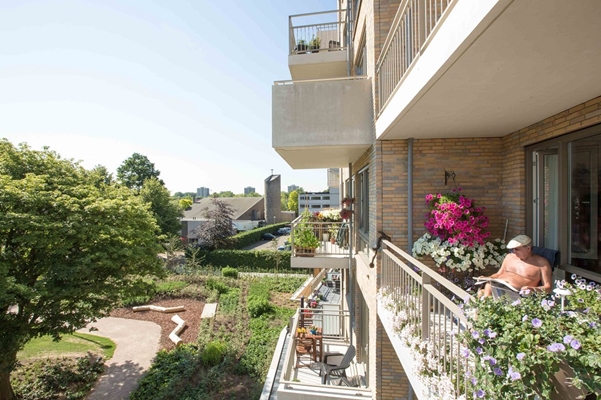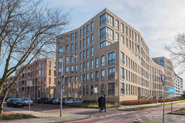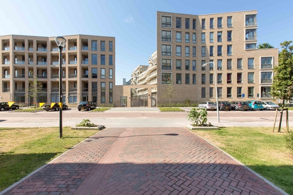 . Aan de Prins Bernhardlaan is op de knik bij de entree een baksteen-kunstwerk in de gevel vervlochten over alle 7 verdiepingen.
