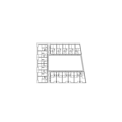 Een efficiënte en slimme hoofdopzet van een heldere woonstructuur in 4-lagen op een commerciële plint en ‘verstopte’ bergingen vormen een kostenbewuste basis en leveren een maximaal vrij indeelbare plint