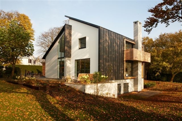 Alle bouwdelen hebben nu dezelfde vormentaal en overeenkomstige nieuwe materialiseringen uitgevoerd in stucwerk, western red cedar gepatineerd zink en stalen puien.