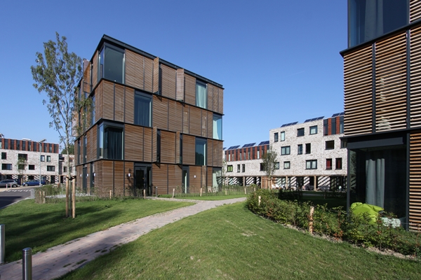 De ingenieus ingedeelde binnenwereld kent geen rondslingerende fietsen, maar oogt verzorgd en ontspannen. Ontmoetingen of een spontane picknick worden door de parkachtige, omsloten setting gestimuleerd.