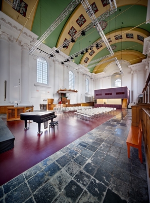 Om van de kerk een locatie te maken die flexibel in gebruik is, zijn de armen- en wezenbanken ingekort waardoor ruimte ontstaat naast de Gaanderij voor een riantere binnenkomst. Vier slanke transparante tochtsluisjes zijn toegevoegd aan het interieur zodat de monumentale buitendeuren uitnodigend open kunnen blijven staan. Het orgel, de luifelbanken en de spreekstoel vormen de sterke referentie naar de oorspronkelijke functie van het gebouw.
