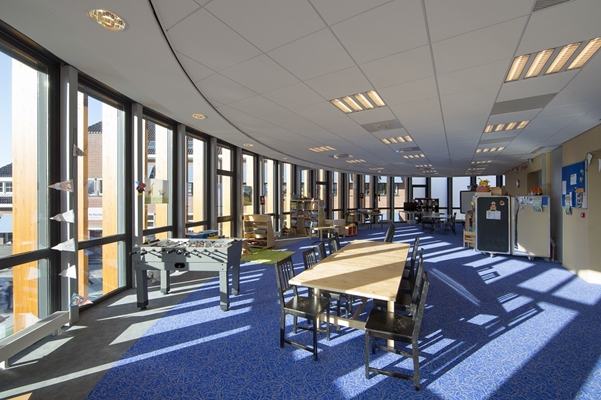 is vooral een bijzonder multifunctioneel complex geworden door het spannende samenspel van twee zeer uiteenlopende typen gebouw. Juist in deze combinatie van oud en nieuw zit de toegevoegde waarde van deze brede school. Een complex waarin alle ruimten zijn toegesneden op het zich ontwikkelende kind.