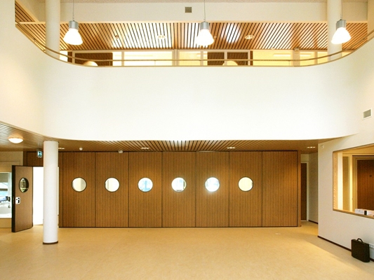 De aula is koppelbaar met het speellokaal en vormt het multifunctionele hart voor gezamenlijk gebruik. Aan weerszijden heeft iedere gebruiker zijn eigen domein. In het onderwijsdomein zijn diverse leerplekjes gecreëerd buiten de lokalen.