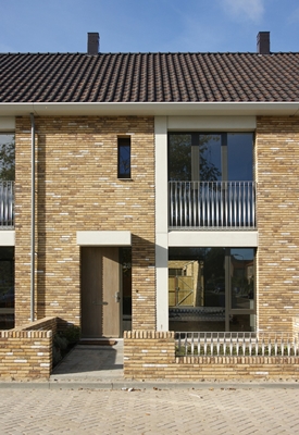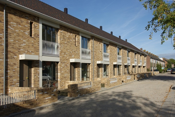 Twee stroken van 10 grondgebonden rijwoningen, vervangen verouderde woningen met een te hoge energielast. De nieuwbouw is een voortzetting van de stedenbouwkundige structuur van de wijk en de architectuur refereert aan de omliggende woningen zij het met een eigentijdse vertaalslag. De tuinenmuren aangrenzend aan de openbare ruimte vormen een integraal onderdeel van het ontwerp.