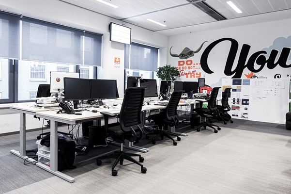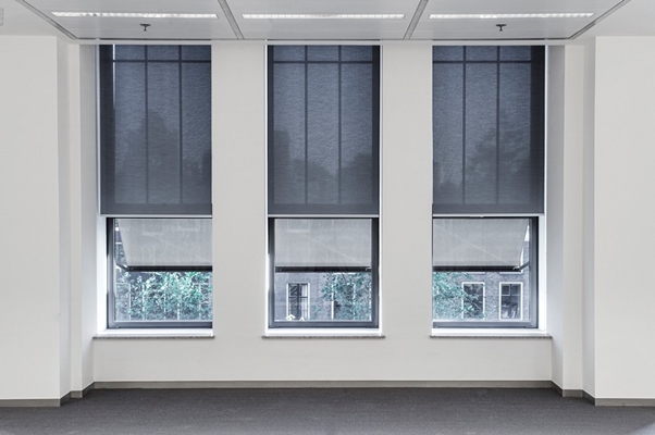 Er werd gekozen voor rolgordijnen in de kantoren en verticale lamellen in de vergaderzalen. De vergaderzalen op de bovenste verdieping hebben allemaal een schuin plafond, waar verticale lamellen een uitstekende en fraaie uitkomst bieden.