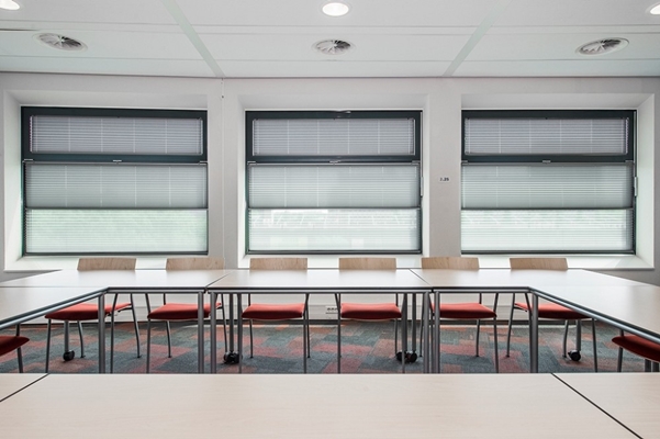 Er werd gekozen voor een plissé in twin-uitvoering met een semi-verduisterend/half-transparant doek. Dit product biedt de veelzijdige instellingen.