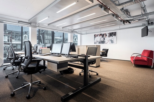 Er is in de kantoren gekozen voor rolgordijnen met de stof