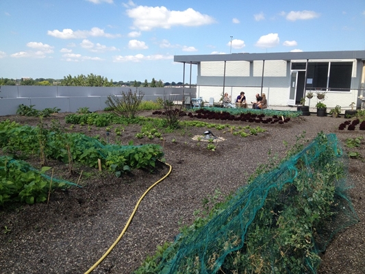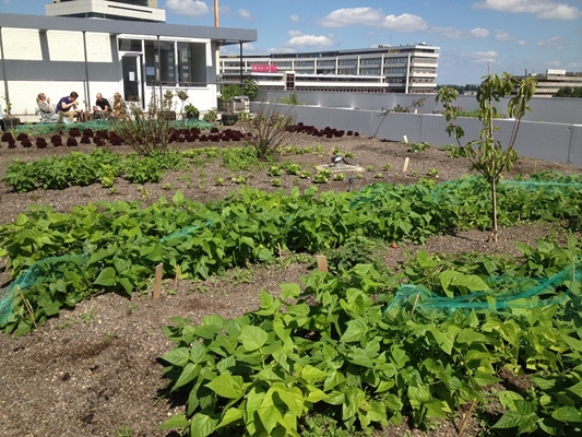 in het centrum van Rotterdam is met haar 1000 m2 het eerste grote stadslandbouwdak in Europa. De dakakker werd in april 2012 aangelegd door