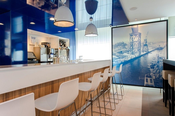Vlak naast het centraal station van Rotterdam ontwierpen we een Holiday Inn Express. Een kantoorpand uit de jaren tachtig werd hiermee getransformeerd tot een eigentijds hotel met 214 hotelkamers. Bijzonder is dat tijdens de conversie, die slechts vijf maanden in beslag nam, de ondergelegen winkels en bovengelegen kantoorverdiepingen in bedrijf zijn gebleven. De compacte entree op maaiveld wordt door een nieuwe trap in de vide verbonden met de lobby en receptie op de eerste verdieping. Het karakter van de door ons ontworpen publieke ruimte in dit hotel is stoer en ‘no nonsense’, passend bij het karakter van de stad Rotterdam. De hotelgast wordt zo achter een vrij anonieme gevel een authentieke en unieke beleving geboden en voelt zich zo echt thuis in Rotterdam.
