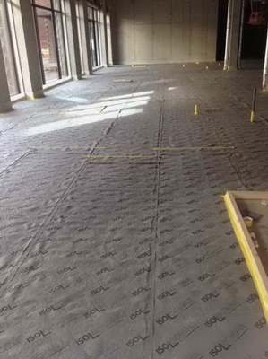 Loos Betonvloeren, die in eerdere projecten met Imbema samenwerkte, had al ervaring met het toepassen van Isolgomma akoestische isolatie. In samenspraak is er gekozen voor een speciaal ontwikkelde 8mm dikke isolatiematten type
